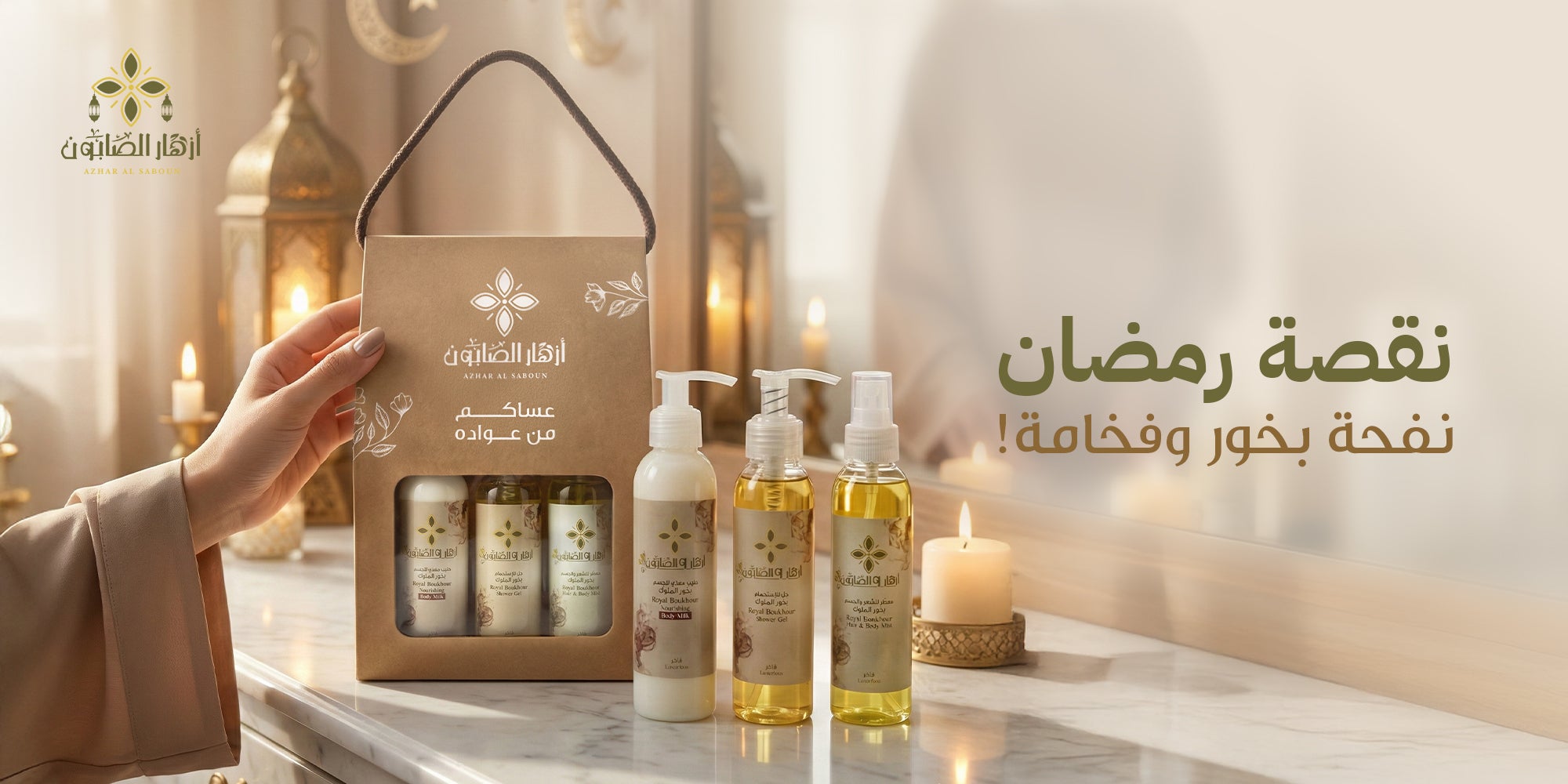 تفتيح، ترطيب، إشراق طبيعي في علبة واحدة… سنفرة الحليب والعسل لنعومة حريرية، كريم تبييض الجسم لتوحيد اللون، كريم تبييض الوجه لإشراقة صافية، سنفرة وإنارة الوجه لتجديد البشرة، وصابونية الشبة والبابونج لنقاء يدوم طويلا...